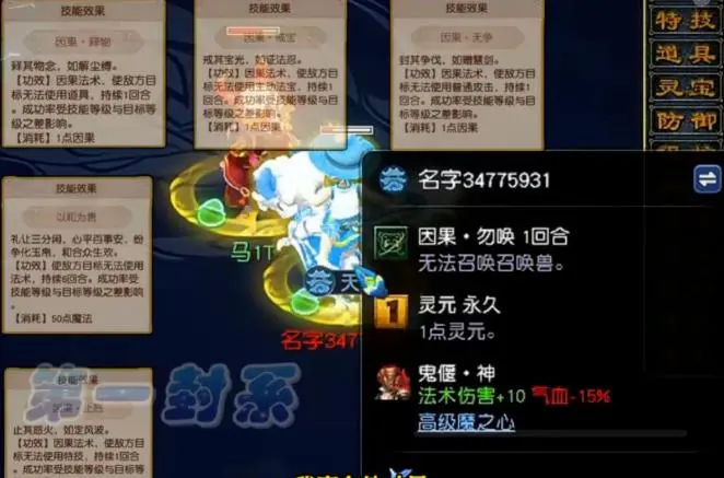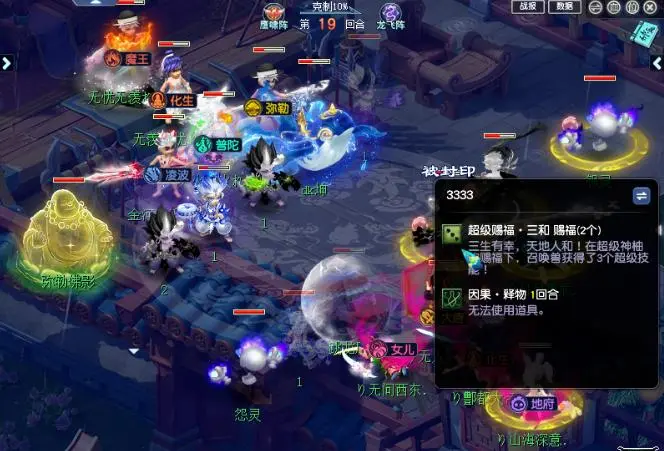 但有时候也很强,3点灵元的弥勒佛影每回合可以封印5个单位,在对战劣势、单位较少时非常厉害。当前回合拉出来的谛听也有几率被佛影封中,为了方便逆境,现在的很多宝宝都没有抗封技能,弥勒山的崛起可能改变召唤兽的技能搭配。